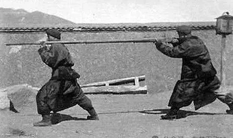 两个人一前一后,扛着一根长到夸张的家伙,这东西叫大抬杆,不是一般人能碰的,兵丁专用的老武器,打仗镇场子用得多,杆子结实,抡起来冲劲十足,爷爷以前说,有句话叫“天不怕地不怕,就怕清兵马立下”,就是形容碰着这阵仗的镇住劲头,照片里的两人劲姿实打实地摆着,看着就让人收住脚,那种被压过来的气氛,搁现在看,脊背都忍不住发紧。