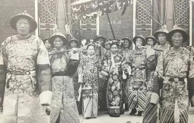 看着威风的这一队,正中高高在上的女人就是慈禧太后本人,后头簇拥着一大帮穿官服的人马,身上的龙袍花纹一个比一个讲究,真丝团锦,胸前鸾鸟绣得精细,手上还拿着团扇,正是出行阵仗最阔气的时候,老照片黑白色,反倒把气势衬出来了,母亲以前在电视上见过类似的场面,说小时候去亲戚家看到一幅老绣像,里面也摆满了皇宫女眷,只不过没人敢像慈禧这般不紧不慢地摆样子,这样的排场,外面人见一次能讲三年。