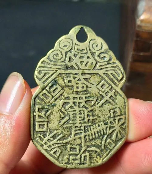 这个铜质的小牌子就是灵符,别小看这玩意儿,块头不大,花纹一圈圈绕着,正中几个大字刻得笔挺,据说贴在头上或者别到腰带里,能挡刀枪,娃娃兵的标配,小时候我还偷偷摸过一次,放手里沉甸甸凉飕飕,爷爷说那年头都迷信,觉着有这个能保平安,胆子全靠它撑着,你要真让他往前冲,都是咬着牙豁出去,没别的法子,现在回头看,灵符再灵,也架不住枪炮,只能说苦日子里盼头少,靠信念熬着。