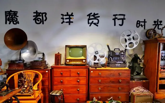这一屋老货色属实热闹,左边一排大喇叭,红木柜子搁着黑白电视和放映机,墙上还写着“魔都洋货行”,老辈人讲,谁家有个匣子,能放出光影声音,就是比别家时髦,小时候哪家过年能把黑胶唱片摆起来,院里孩子都能多凑热闹一天,如今家家户户智能电视一台不只,看着这屋子里头老件杂陈,谁敢信那也是一代潮流。