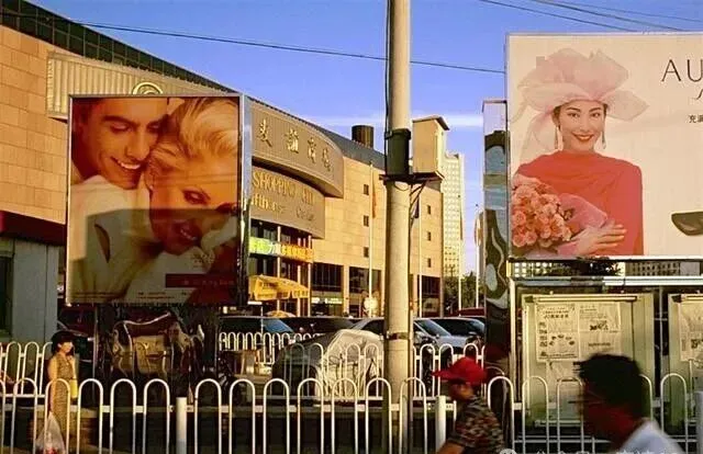 99年的广告牌刚刚时髦起来,一半是西方明星卷发大笑,一半是本地明星戴着婚纱,马路边的人骑车而过,仿佛根本不在意这些时髦气息,只有天很蓝,楼影拉长,有人说:咱也要打扮得洋气点,看看人家多精神。时代的审美也就这么慢慢变了。