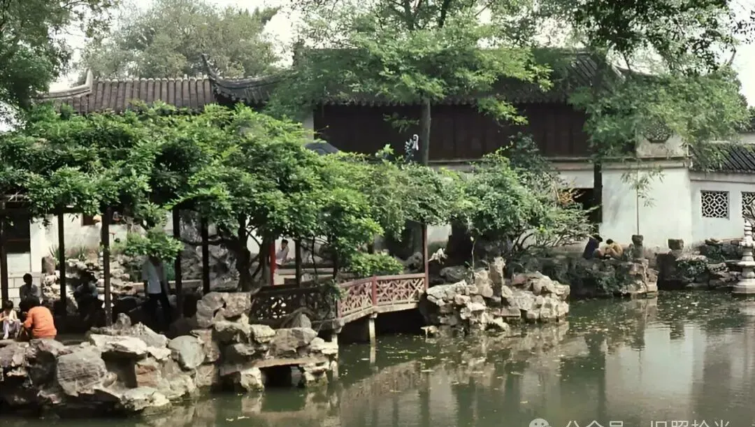 老苏州的园林,讲究的是安静和闲散,不像现在只拍照,图里的亭子旁边立着几个人,有的靠栏杆弹琴,有的手里捏着团扇聊天,水边柳树贴着人影,小孩子从石桥绕回来,听见水响就找地方蹲下丢小石头,满池的荷叶,风一吹就晃,看客什么都不急,爷爷说,“园林就应该慢慢逛,急不得”,一下午就在石头堆边转,喝茶、唱昆曲、扇风,院里院外全是旧味道。