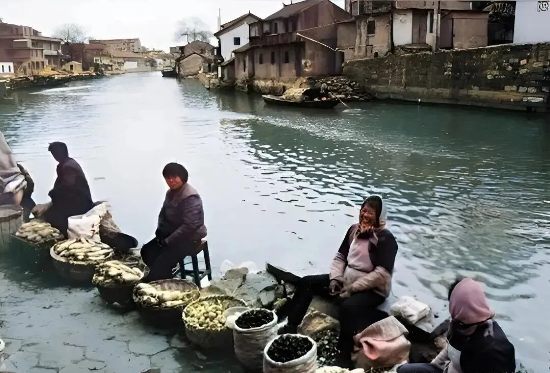 河沿边一排坐着七八个阿婆,大竹筐一只挨着一只,手里搅着的是螺蛳还是小鱼,一边拣一边说话,谁家女儿出嫁,哪家的孙子又考了学,远远听见一阵笑声,这种水边小摊子的热闹气现在越来越少,小时候妇女们搓衣裳的手劲儿,河水冰凉透骨,大冷天也得守着竹筐,人人都有一双能做活的好手,日子虽然紧巴巴,但都过得有滋有味。