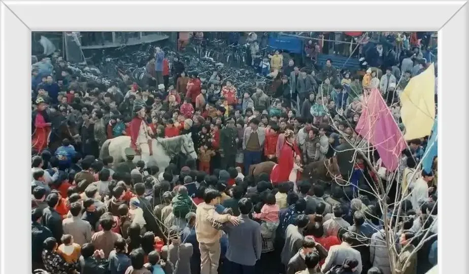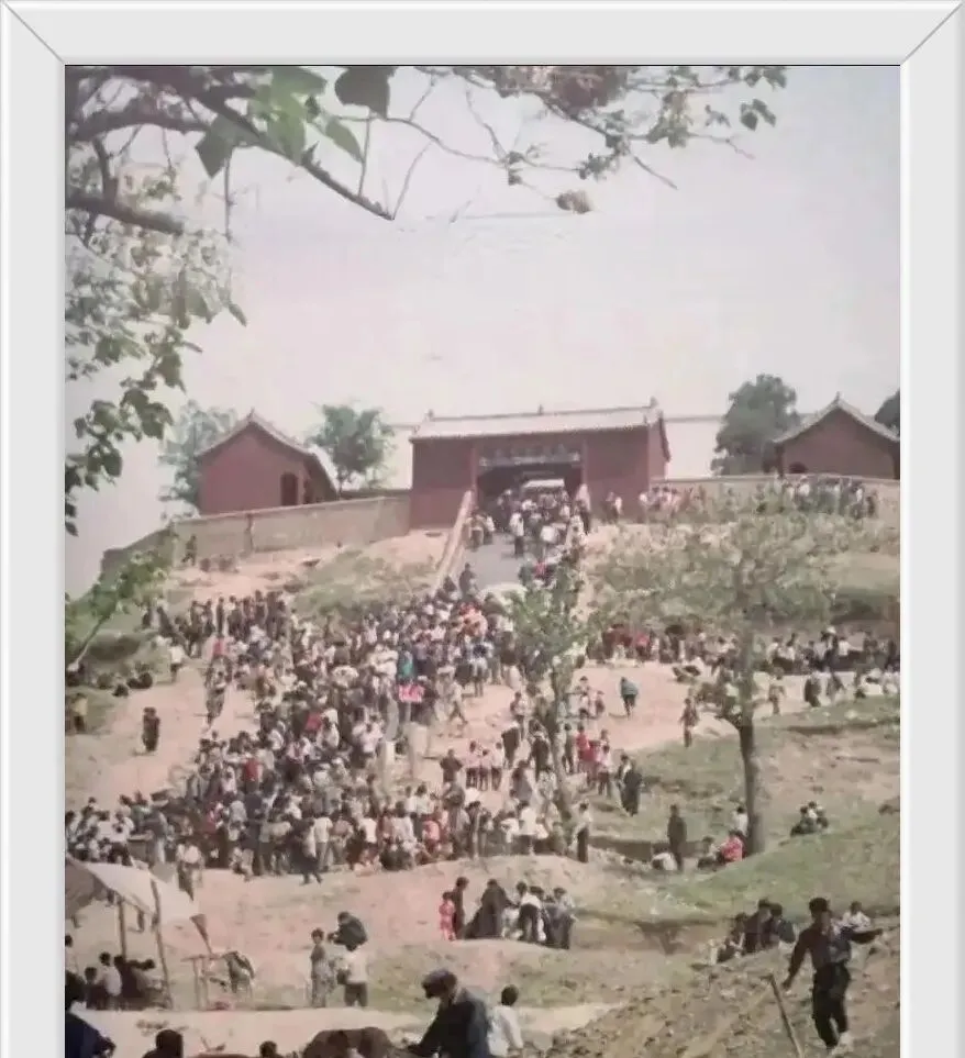 永城老照片里,最耐看的还是这些“人气最足”的地方。沱河张桥大闸,刚建成时那种硬朗感很强,整整齐齐一排闸孔倒映在水里,像是把一个地方的筋骨撑起来了。压麦场那张就更绝了,大人忙着压麦,旁边一个光着身子的孩子坐在麦秸里玩。今天看会觉得“这也太随意了吧”,可在当年,这就是最普通不过的乡下夏天。还有芒山庙会,人挤人,台上唱着,台下围着,远一点山坡上都站满了人。你看那些衣服颜色、站姿、挤着看热闹的劲儿,庙会不只是赶集,简直像全城人都出来透口气。