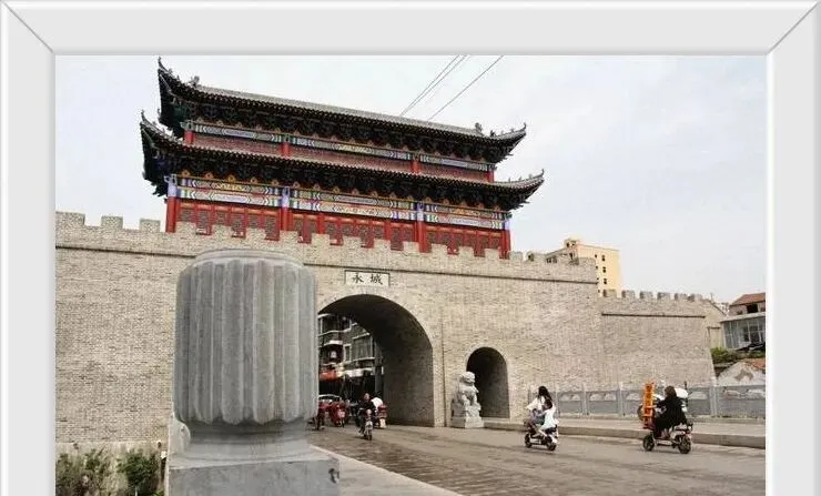 我挺喜欢那张雨天街巷的黑白照。地上湿漉漉的,有人推自行车,有人围在一起,板车停在一边,整个画面没有谁在“摆拍”,全是生活自己长出来的样子。还有东城门那张,城门楼上写着“和谐”几个字,城砖旧旧的,门洞深深的,下面人来人往。别看只是一个城门,那个年代城里城外的分界感,一下就有了。再往前翻,1938年的大牌楼更让人恍惚——街面不宽,楼牌却很讲究,像是老县城留给人的体面。