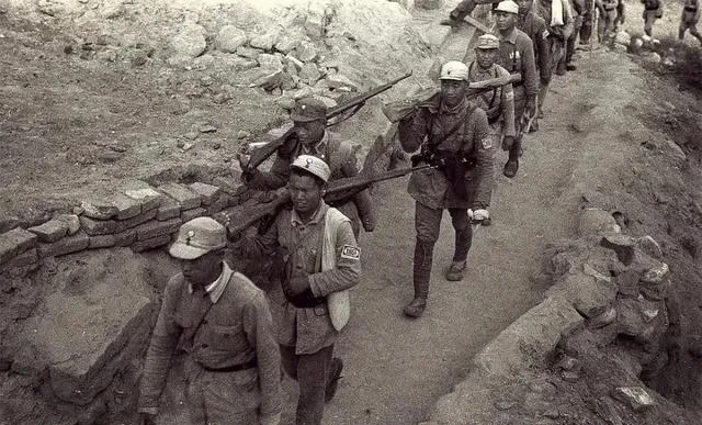 这一队八路军正在壕沟里走,人手一杆步枪,有的肩头还扛着装备,带着袖章和补丁的老棉衣,配枪的只有少数,剩下的各自把东西背得满满,低头没多少话,赶路的脚步咯咯作响,照片能闻到汗味和泥巴气,队伍拐过墙角,是准备去前线还是刚刚拉回来,只有他们自己最清楚。