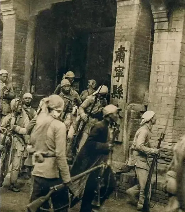 老照片里这一拨八路正从县衙门口鱼贯而过,门前砖楼高大,两边全是磨得锃亮的步枪和手雷,头上绑着白布条防弹风沙,看得出来像是搞突击的,把命拴裤腰带上,走到哪都是一盘火药味。