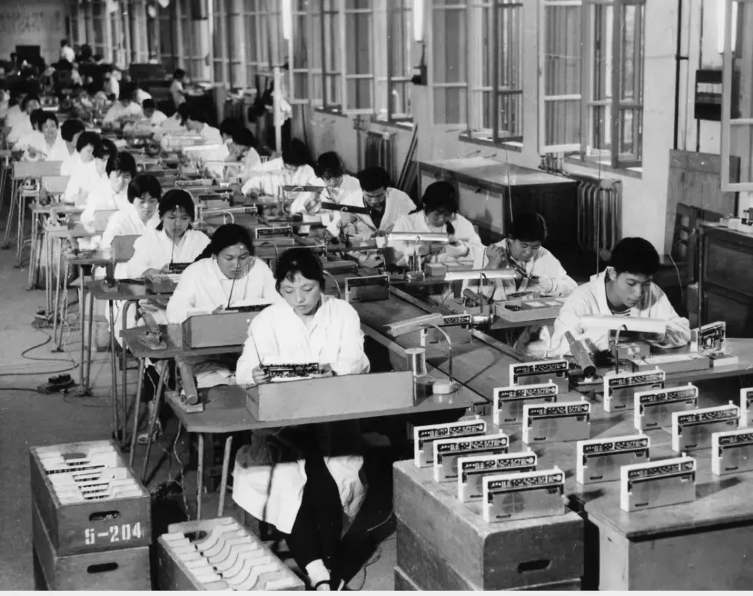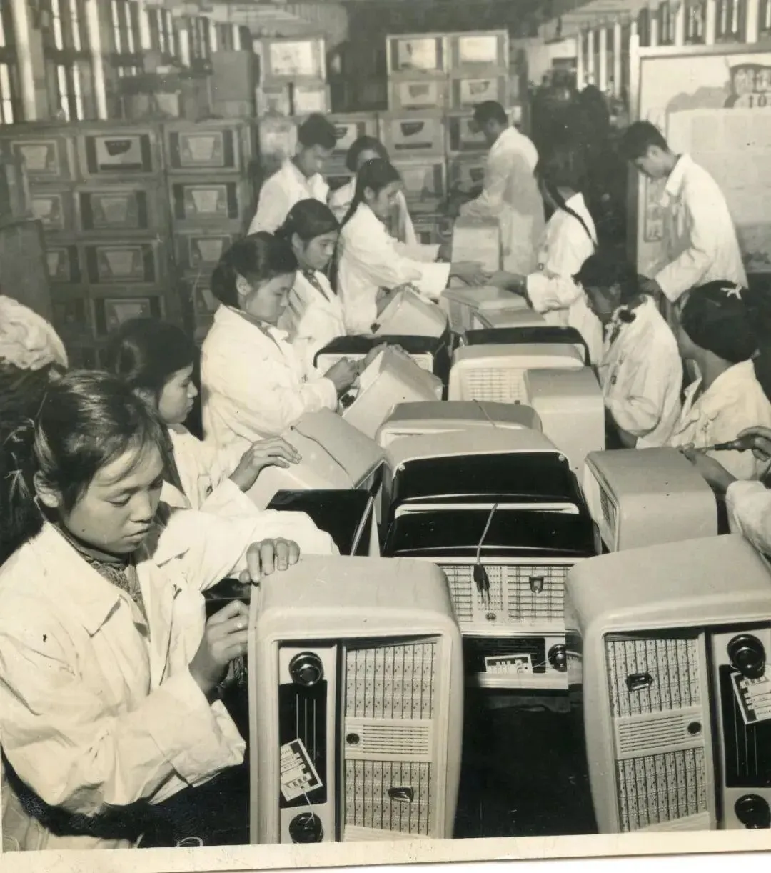 工人们有序作业,设备陈列整齐,真实还原早期生产线场景,展现国产收音机从无到有的匠心制造过程。