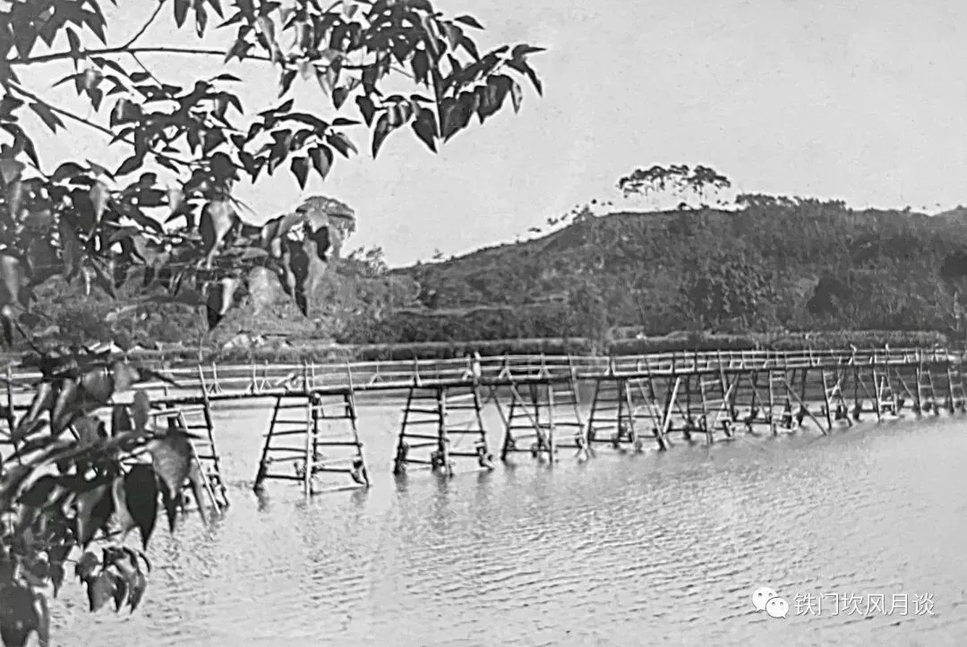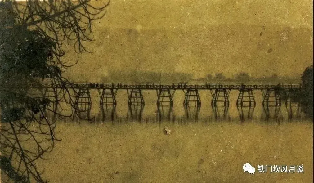 对照这张1935年12月的五通桥风景照,可明确周鑫照片中为灯笼桥。1935年这张照片,拍摄的是竹根滩通往四望关的简易木架桥,此桥被称之为"灯笼桥"。民国19年(1930),由24军团长王麟生主持修建四望关至江声码头的季节性木桥灯笼桥。