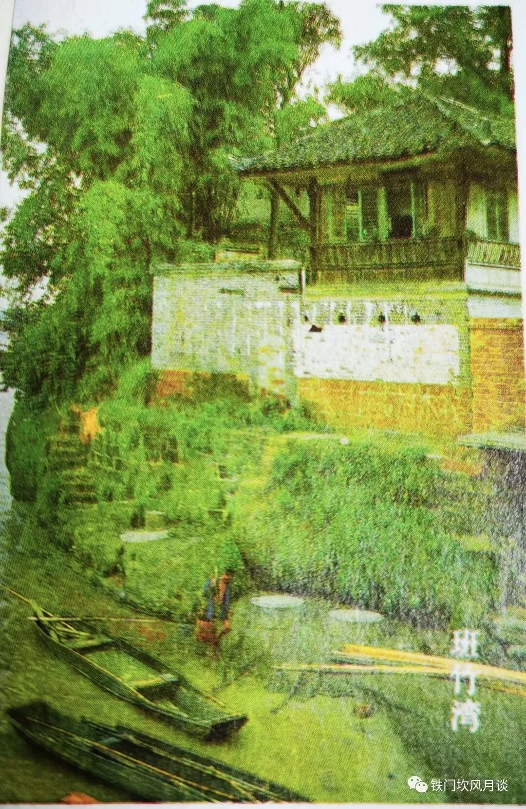 这张备注为“嘉州古城城墙一角”,我暂无法确定是哪里。我猜测可能是水西门外。齐邦媛读武大时,没课的日子,常抓起诗本,穿过湿漉漉水西门的城门洞,由水夫们挑水上下的石阶下去,往右边河岸走,有一条依稀可辨的小径,引向一处河滩边的美丽草坪。坐在这里,可见大渡河帆船顺流而下,后面是无垠的江天。嘉定是木材集散地,山里的林木扎成木筏形式,堆成一排排的,等水涨了由岷江顺河而下,输送到长江大港城市去。这些水西门下的木排,是黄昏后学生们喜欢攀上去坐着唱歌说话的地方。