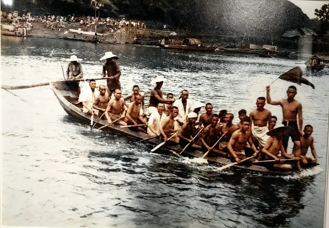 (嘉州端午民俗赛龙舟民俗活动,周鑫 摄于上世纪四十年代)