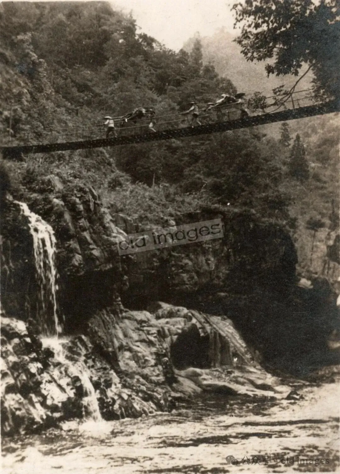 (峨眉山龙门铁桥,周鑫 摄于上世纪四十年代)