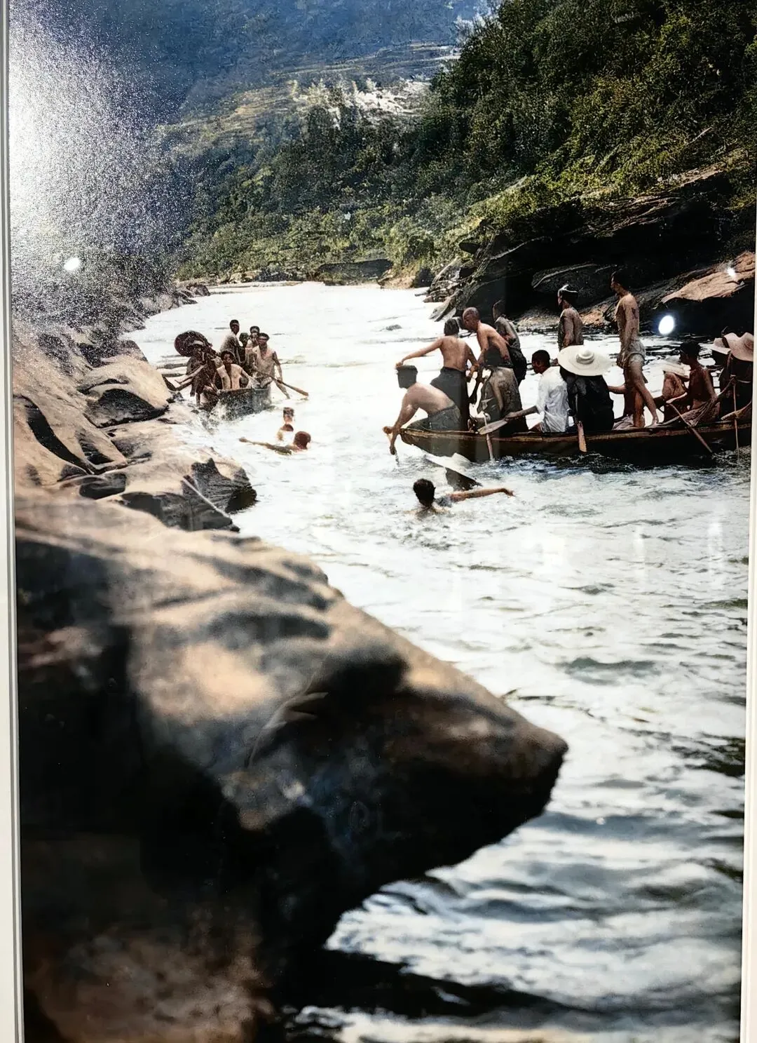 这张图,原备注为玩水。我觉得应为端午赛龙舟活动时“抢鸭子”。从背景看,我觉得不像是乐山城,也不像是五通桥。有无可能是如今市中区小三峡或犍为某处。