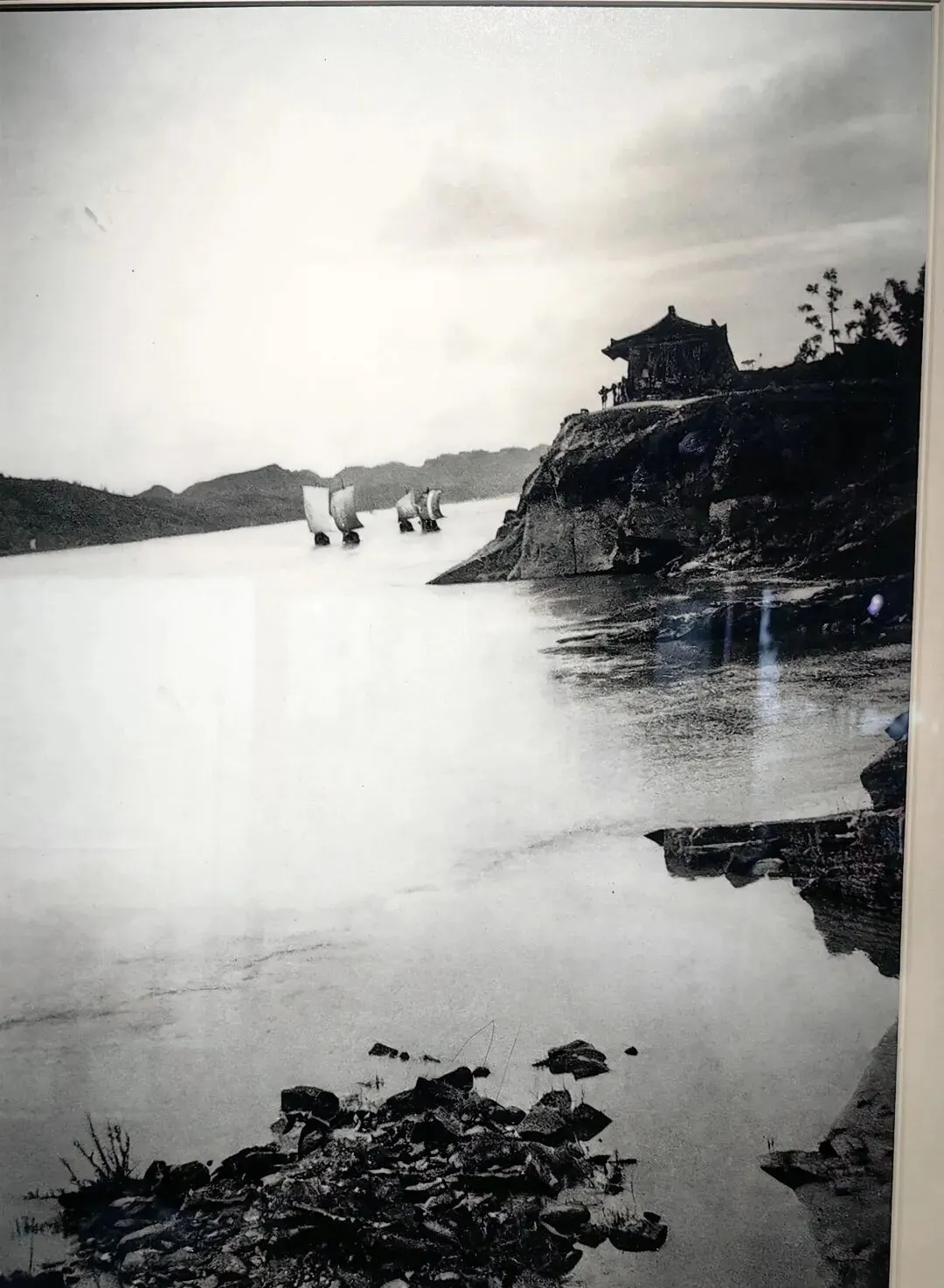 (貌似为大渡河河景,右边貌似城墙,但远处的山崖又不像是城墙旁,周鑫 摄于上世纪四十年代)