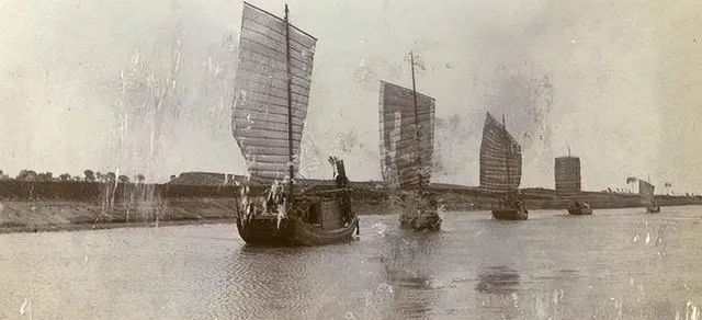 图里那几只大帆船,桅杆笔直撑着,厚布帆被风顶得饱满,前头领着,后面跟得紧,把整条河面都划成了一道风景线,小时候家里人走亲戚常说“小清河,水下去就见底”,可照片上的河道宽得很,船排得密集,远远望去像赶集,以前走陆路难,水上这队帆船就是当地人的大动脉,码头熙熙攘攘,卸货装货靠的全是这些老伙计。