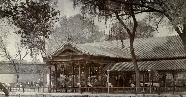 这个画面是书上难看到的场景,临水长廊下头挤满了人,穿长衫的、挎皮包的都靠着栏杆,后面老树垂下来枝丫,亭台灰瓦顶正好把一伙人全罩在底下,这种热闹,只有节气头或者大人带小孩来的时候能见着,你若是坐在那里,耳朵能听见河里远远传来几句吆喝声。