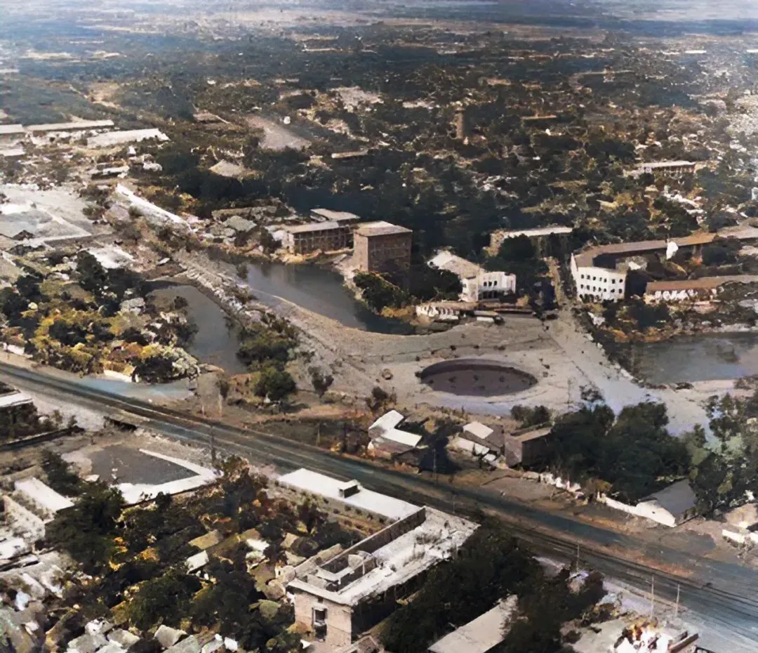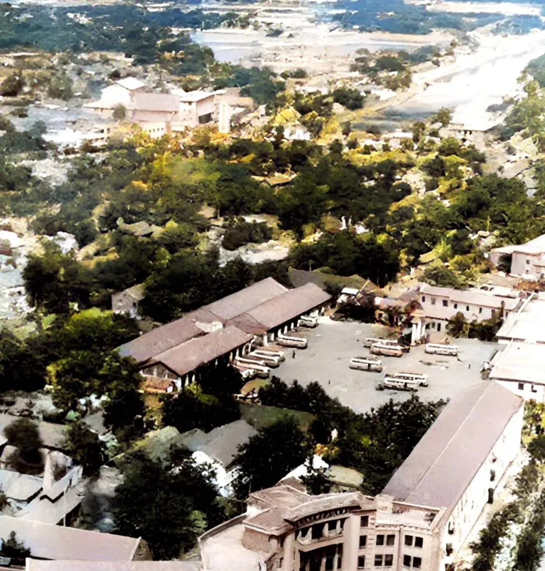 这张俯拍下来的区域,市中心长途车站,黄墙灰瓦,旧车一排头尾架着,售票厅大字用红漆刷的,小时候家里要是有事,非得到站里排队,外头冷风嗖嗖,车没地方等,只能靠着三轮车或者坐石墩凑合,大人带着小孩赶早班车,门口三轮摩托呼啦排一溜,没空调,没什么遮风避雨,等上一趟急得直跺脚,进门前还会捎手买几块小面包塞肚子,那种人来人往,脚步和脸色都赶时间,跟现在冷气候车大厅里的安逸完全不是一个劲。