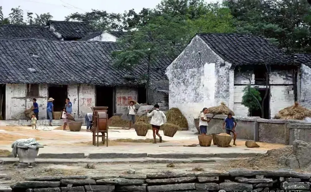 图里这些田埂边的空场子,全是当年农家最常用的晒场,竹篓、扁担、小孩跟着大人搬粮装草,太阳底下热气往上蹿,几个女人手里一抛一接,谷子就翻着金光,有时候小孩趁着没人瞄两小把撒进水沟,还得挨骂,干完活,大伙坐石阶晒着脚,男人女人都不赶时间,天一黑全忙回屋,岁月味道全藏在粮食和竹篓的窸窣声里。