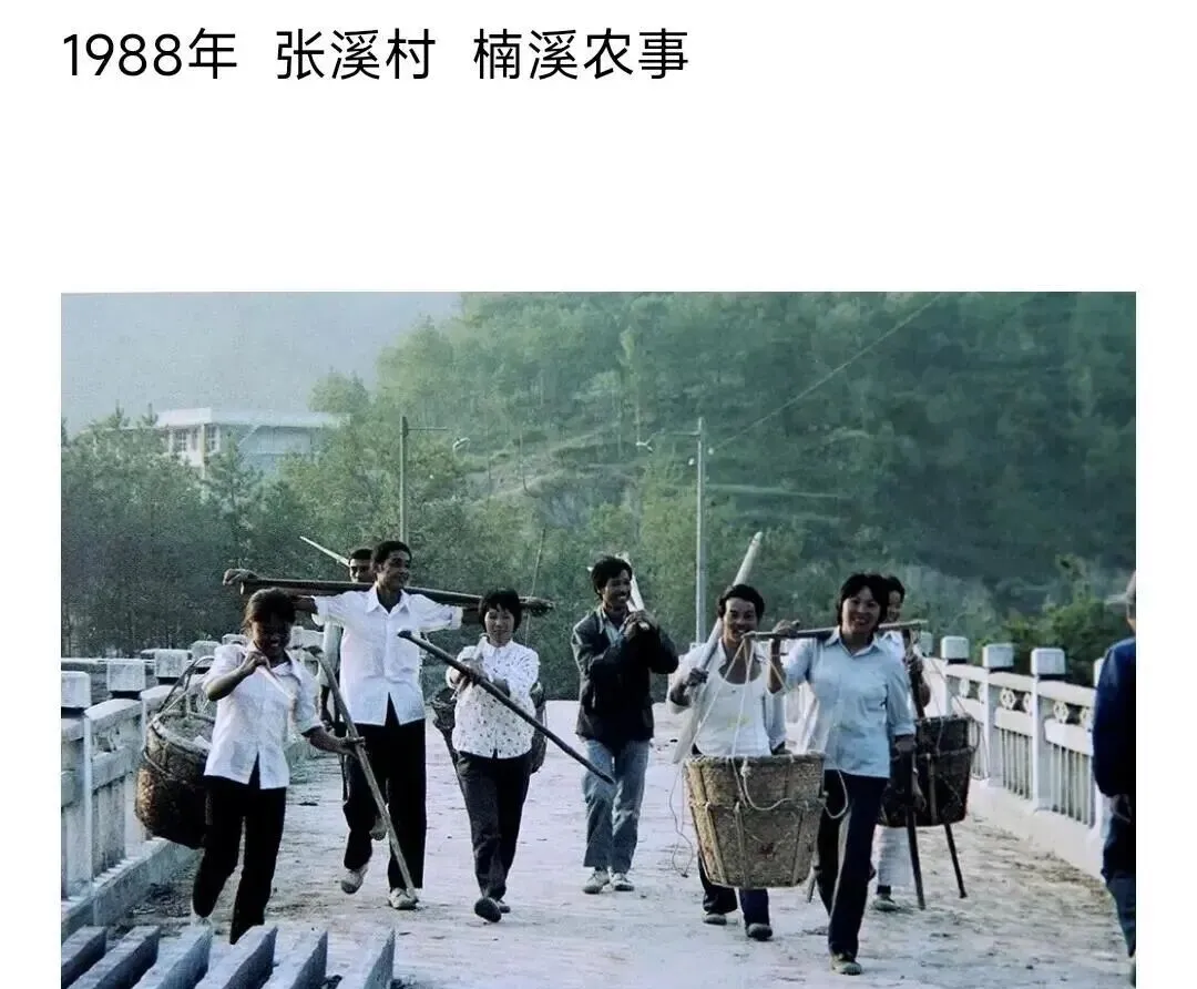 桥上一大群人扛着竹篓挑杆,手上沾着泥,走路带着风,脸上有光,收工回来路上还能听见谁家喊孩子回家吃饭,扁担有弹性,窝在脖子上的红印到晚上都散不掉,男人女人肩并肩,干活讲究个团结,谁掉队谁就笑嘻嘻跟着小跑,这样的场面,现在大概只会在很老的年画里看见。