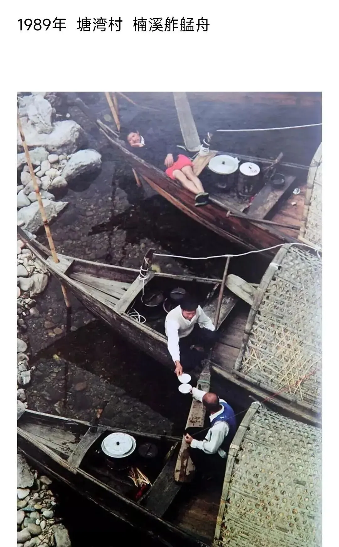 这一水面,摆了两三只细长的舢板,顶上搭着竹棚,水面上飘着炊烟,有人支锅有人在船舱打盹,这种船做吃食的,叫艄公饭,小时候嘴馋家里不给钱买小吃,常惦记船上那股热气腾腾的香味,河水浅了得下去推一把,深了就坐着等,碗筷和船板敲得咚咚响,好多年没闻过那种烟火气了,现在河水清了,舢板少见,若没这些照片,怕是连个影子都想不起来。