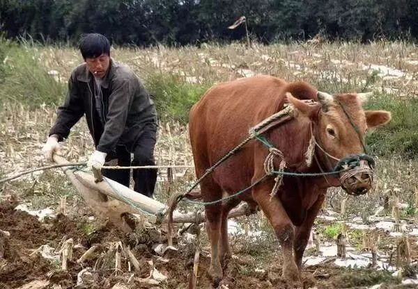 这张照片里是犁正被牛牵着耕地,牛鼻旁还拴着草绳,农人一边唤一边用脚踩平,动作不多话也不多,那时候靠的是人和牲畜的默契,现在拖拉机轰的一下过去了,耕地的节奏变了,但看着这画面总觉得安稳。.