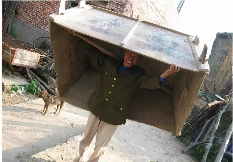 照片里那大箱子叫担子箱,能背着装东西走山路,男人扛在肩上走过坡道,箱体受过补丁,老人笑着说当年去赶集都靠它装货,如今更像是乡邻间的谈资。.