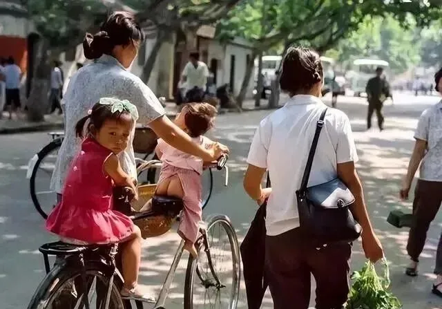 图里这车叫二八大杠,能横着带俩孩子的那种,车身黑亮,就是再破点油都得抹上,小时候谁家有这么辆,出门都自带点神气,后座基本没空过,总有孩子稳扎稳坐,前梁再挂一个,人多的时候妈妈只能单手拎菜篮,拐弯窜胡同一溜烟,买米、上学、串门,全靠它撑场面。现在讲安全,那会大家可顾不上那么多,小孩在车筐里咯吱咯吱笑,摔了挨两句骂照样蹭上去,邻居说,这就是那会儿最实用的“七座豪车”。