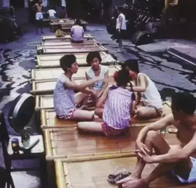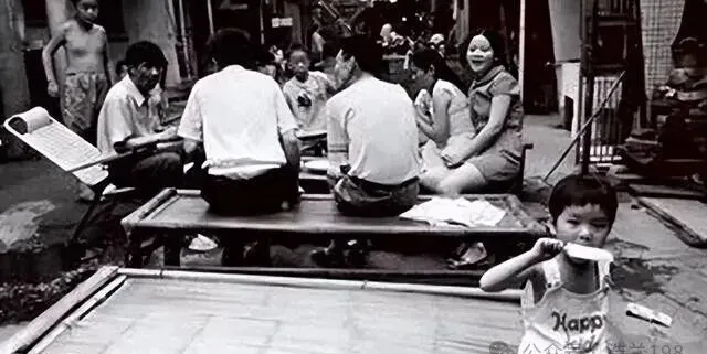 图里全是晾到门外的竹床,一到晚上谁家都往院子里搬,握把蒲扇,聊闲天,天一黑孩子一窝,上面坐着打牌讲鬼故事的,大人喝茶吹牛,谁家有空壳西瓜都不差分给院里的小孩半块,睡竹床能见底星星,蚊香一盘,天热也不闷人。现在空调屋里转一天,才晓得那种自来风配竹床的舒服劲,几乎没有咯。