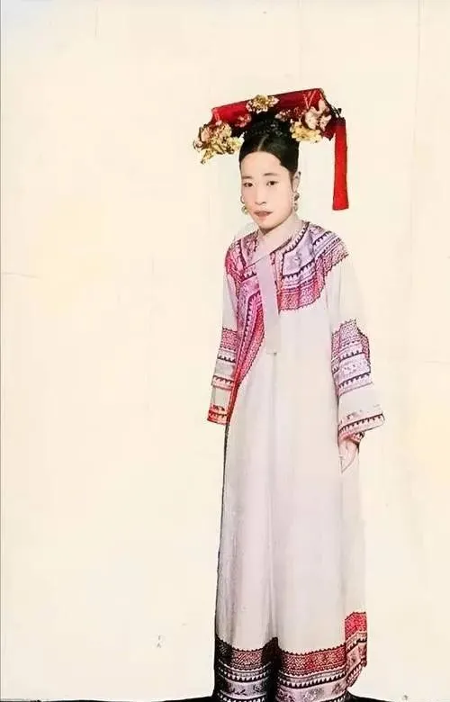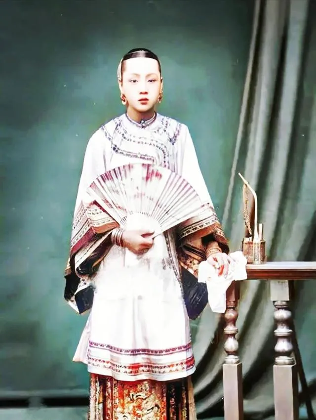 图里的这个是光绪帝的皇后隆裕,绣花衣服一身素,手里文扇遮着半个胳膊,头发利索,脸上没啥妆,气质干净安静,说句实话,真要论长相她在闺阁中也许排不上最顶,可身上的气场,无声成了主子,奶奶曾恍惚感慨:这古时候娘娘也有不爱打扮的,清宫剧里都穿得花枝招展,现实里规矩最大,妆点全靠规矩撑门面。