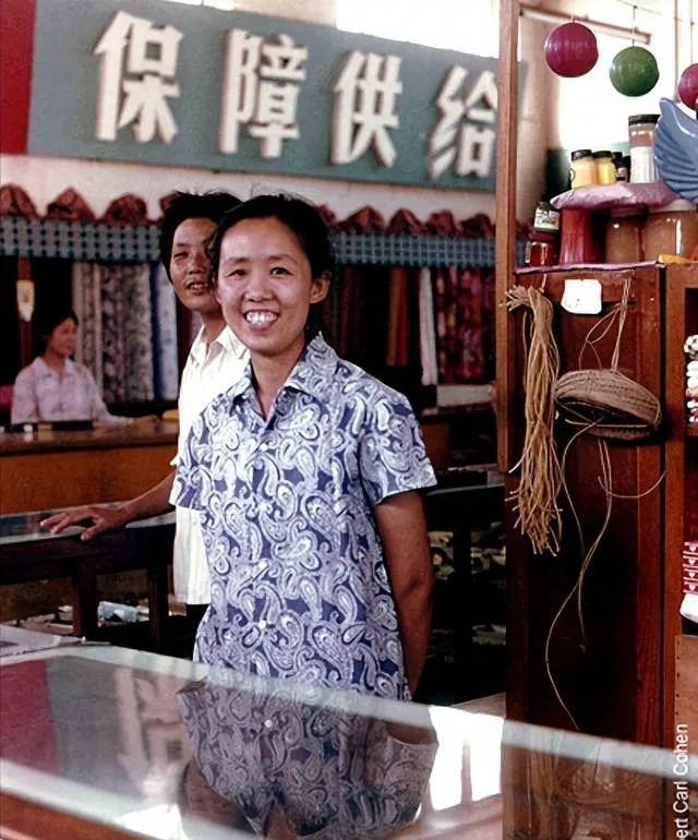 这个门面叫供销社,橱窗后面是布匹和日用品,招牌上写着“保障供给”,门口站着笑着的营业员,买东西得看排号,有时要凭票,排队买东西也能聊一天, 邻居会顺带带个鸡蛋回来,店里有根秤杆和木制柜台,妈妈常说以前的东西不花哨但实在。