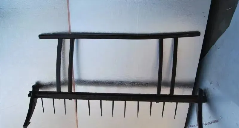 大哥大姐们, 这耖在当年可是整地的好帮手, 犁完水田之后就得用它把地耙平整, 十几个尖齿排成一排, 牛在前头拉, 人在后头扶着, 在水田里来回走, 泥巴就被耙得平平整整的, 那时候种水稻全靠这套工具, 现在都用拖拉机旋耕机了, 这老农具早就淘汰了, 可那时候光着脚丫子在泥田里耙地的感觉, 还有泥巴糊满腿的样子, 现在想起来还觉得有趣。