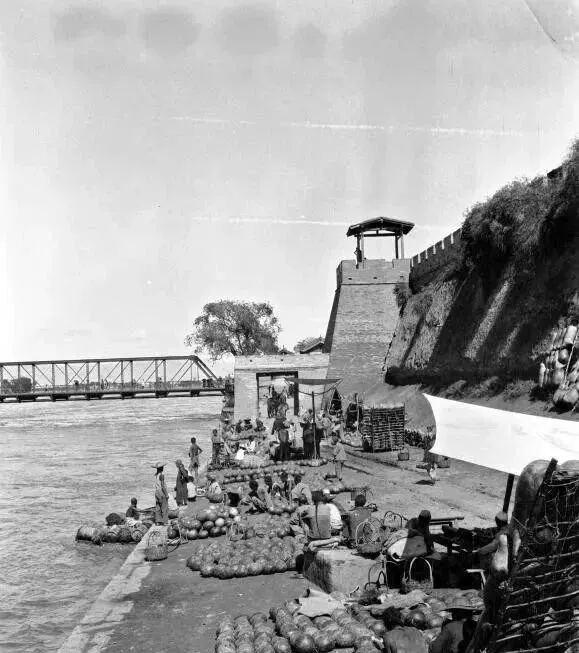 铁桥出现在画面左边,黑色的钢梁连着两岸,这可是当年清末修的黄河铁桥,水边一溜摆着瓜果和竹筐,小贩们席地而坐,边卖边吆喝,高高的城墙下影子拉得很长,夏天水边市场人挤人,小孩子跟着家里人卖瓜卖蛋,盐场堡附近水车“哗啦啦”转,点缀了一座城的热闹,这场面现在基本见不到,大家都去超市了。