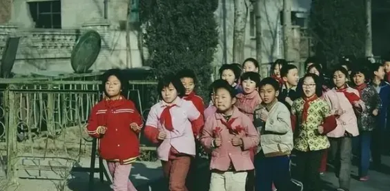 这张照片里孩子们穿着红领巾,在操场上排着队头也不回地往前跑,有人穿花棉袄,有的就简单一身校服,风大的时候头发都被吹起,小时候体锻,有的人出了队还在扭头逗闹,有的穿着妈妈缝的手绢兜,口袋里装着糖球,天冷就钻主楼檐下晒太阳,老师拿着哨子,喊着“前后拉开,别打闹”,有的假装系鞋带混时间。