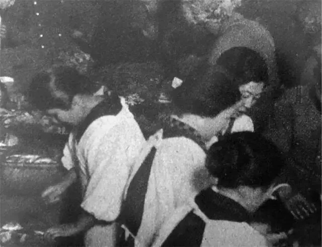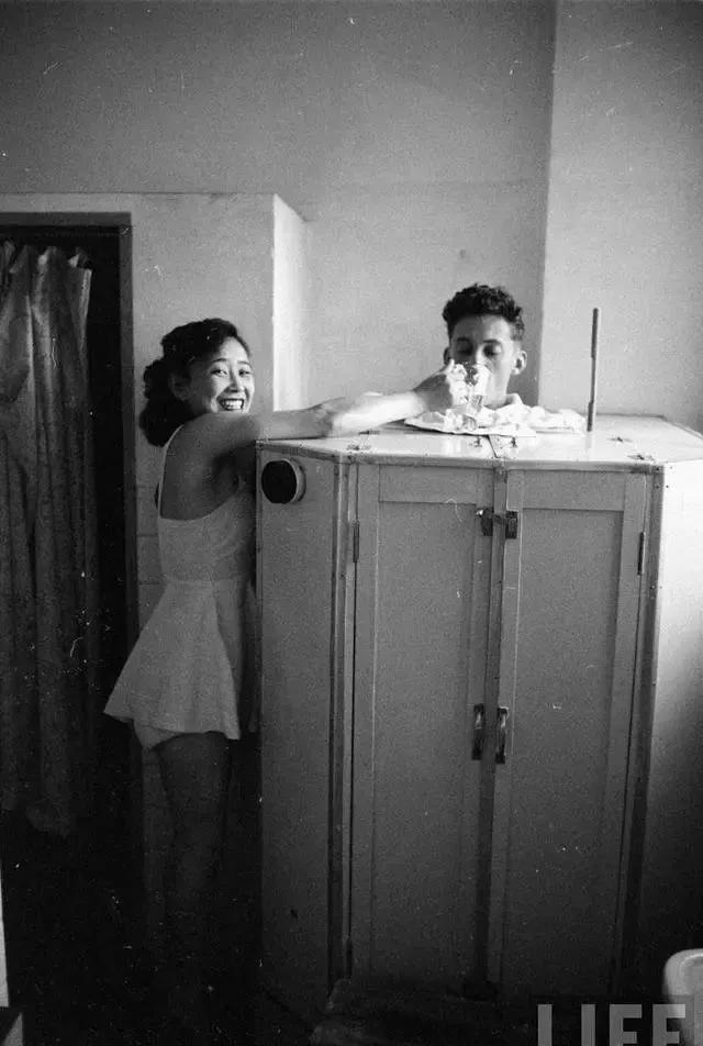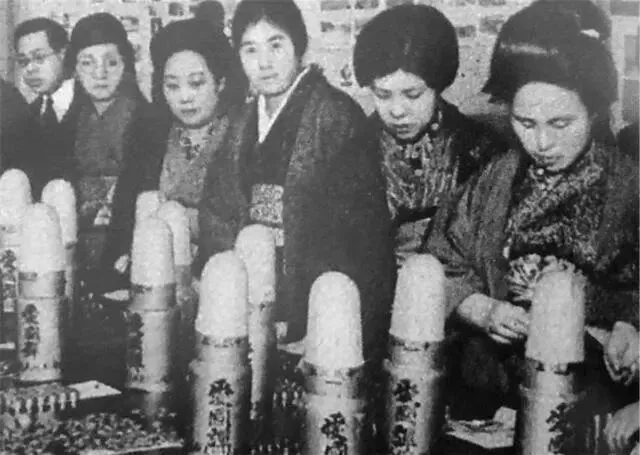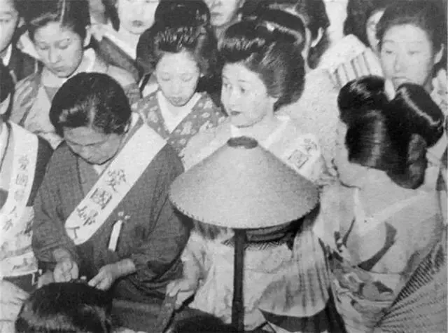 在日军发动九一八事变后,日本国内的女性在京都西本愿寺庙进行军费资金募集,为了支持日军的侵略行为,她们打出了每人少吃一顿饭的口号。为了支持侵略战争,东京的艺伎从业者将自己的首饰捐献给政府,以支助前线的日军士兵。在九一八事变后,日本的妇女在募集军费的时候制作的爱国弹。日军入侵徐州时,在庆祝大会上的日本国防妇人会的日本女性。在日军发动九一八事变后,日本国内的女性制作绷带等军用物资。1937年,日军占领中国南京,日本国内的国防妇人会的女性走上大街,举着小国旗庆祝日军攻陷中国的国都。在日军发动九一八事变后,奉天妇人会的日本女性正在为日本士兵们做饭,以慰劳他们在前线作战。日本全面侵华后,在上海的日侨走上大街,为日军筹集军资。在日本发动全面侵华后,日本国内的妇女进入军工厂,这张照片拍摄的便是日本女性正在磨军刀。二战结束后,几万美军入驻日本,当时的日本遭到了两颗原子弹的轰炸一无所有。即便如此,日本为了讨好美军,不仅给驻日美军提供衣食住行。还成立了涉外俱乐部供美军玩乐,让美军过着神仙般的生活,甚至有传言日本平均身高增长可能与这有关系。图为一个比较高端的娱乐场所,主要是供级别比较高的美军享用,几个日本女孩穿着和服陪美军跳舞。图为浴室桑拿座厢,一个日本女孩正在喂一个美军喝啤酒。当时大街上经常可以看到美国大兵和日本女孩手拉手逛街。美日混血儿,当时很多日本女性都希望随美军回国,但是如愿的极少。当时大街上面贴满了大量的广告,可以说对战后日本经济的复苏起了极大的作用。全文到此为止,如果喜欢,请点下“在看”或者分享到朋友圈。