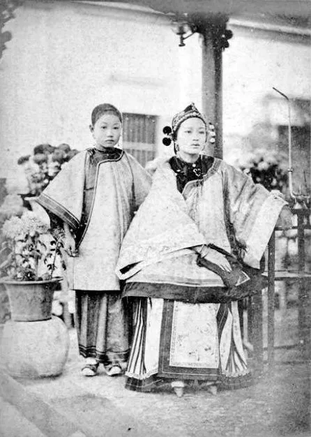老照片:这张图是一位中国妇女和一个女孩的合影,不知这是母女俩还是主仆俩。