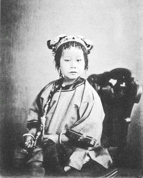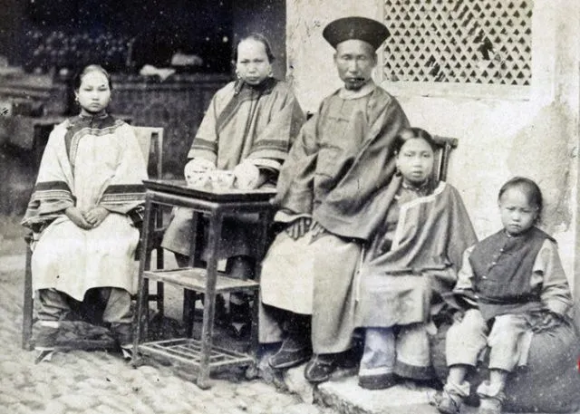 老照片:这张图拍摄于1874年,这是一位 一位低级官员的全家福。这种场景很罕见,因为根据严格的儒家家规,妇女不能在客人来时露面,也不能出门。