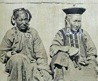 老照片:1874年,内蒙古,两个身着节日礼服的妇女。