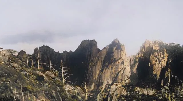 这座青灰色山头边上两个人影,远远地站着,一句废话没有,整座山头只有风声和云雾缭绕,那种人少景大的空旷劲,现在节假日去了再也捞不着,当年我爹下乡说,能碰见旅客上山就是巧了,安静得吓人,山风透骨头,剩下只有眼前的辽阔,这种感觉现在照片里还能感受一二。