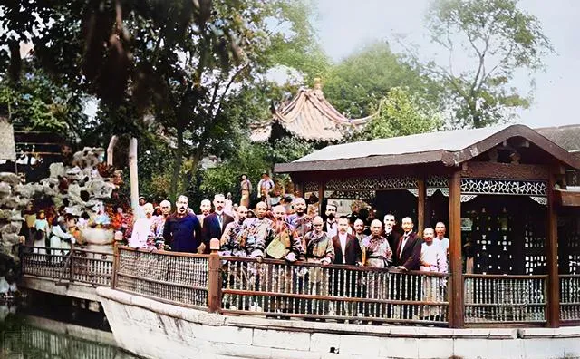 这个画面摆得规规整整,满桥子都是穿长袍马褂的男男女女,有头有脸的官员旁边还夹着几个老外,这叫做各色人物一台唱,合个影谁也别抢风头,里面有的是官,有的是外宾,神情有松有紧,有人不苟言笑,有人压根笑不出来,留个影,热闹也就留在旧纸片里,家里要是还保存一张,一传几代都不舍得扔。