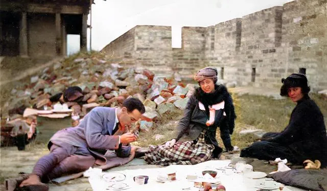 这个东西乍一看有点稀罕,图上几个洋人,铺了块白布直接坐在破砖堆旁,水果、酒、茶,摆得像模像样,有人点烟,有人搭话,身上的衣服西式加厚披肩,尽显悠闲劲,身后是残破的城楼,野花杂草乱套,洋人吃得自得其乐,那年头城墙也没人管,被外人当成约会的好去处,现在胡同里的老太太要见到这画面,没准会搓着手感叹一句:“这些洋人,会玩!”