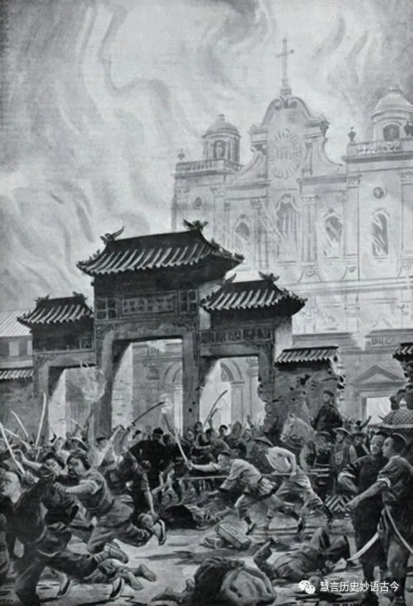 1900年法国《世界报》画版:北京义和团运动 -火烧圣母无染原罪堂