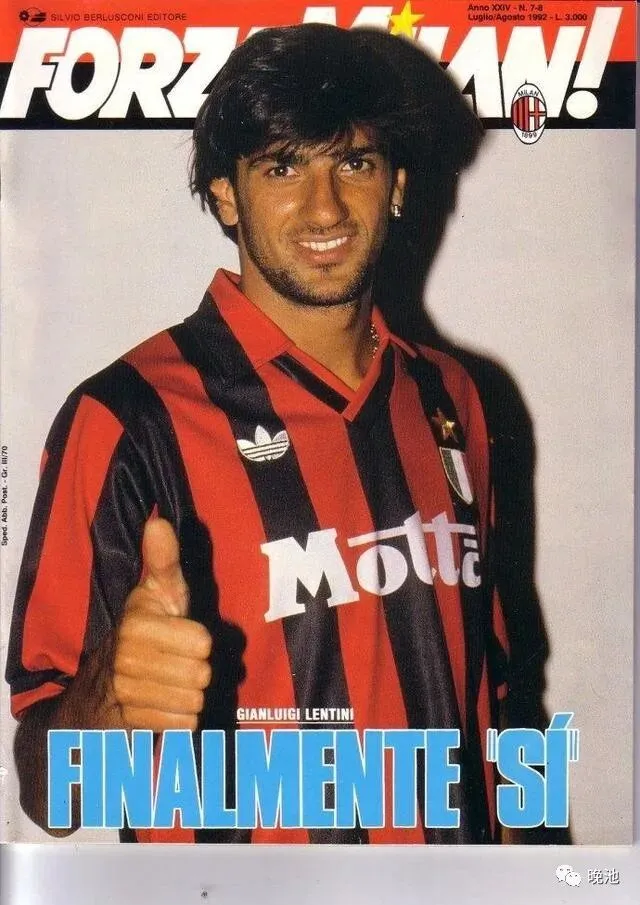 上图是1992年7月的加油米兰杂志封面,刚刚加盟红黑军团的伦蒂尼俊朗飘逸,英姿勃发。