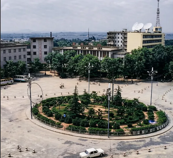 1990年,江西鹰潭市中心广场,那时,汽车真少,道路很宽。