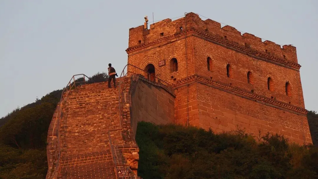 东沟长城,指的是八达岭残长城,也叫八达岭古长城,是八达岭长城向西南方向延伸的一段,因地处八达岭镇东沟村才被叫成东沟长城。昨晚住宿在景区内的阿来客栈,凌晨3:30起床,4:10登长城,5点前找好位置等待日出。在朦胧之中,东方的天际逐渐由清冷的灰白色变成温暖的橘红色,约5:20,在色彩最浓艳的位置下方,蓦然显露出一个红色的半圆轮廓,这个半圆迅速扩大,眨眼间就变成了一个红色的圆球,像乒乓球一样往上弹起。球弹起来后便向上升,光芒越来越强,球上部的红色逐渐变成金黄色,当金黄色自上而下替代红色的进程完成后,充满整个球的金黄色又渐渐褪去,球被耀眼的白色光芒完全占领。就这样站在古老的城墙上欣赏了一次完整的长城日出。