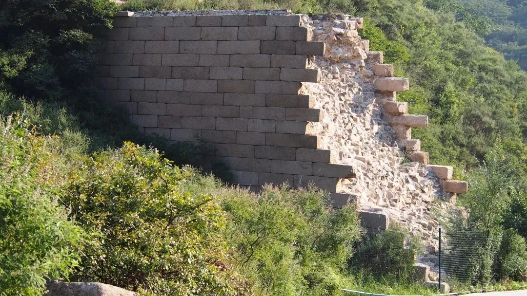 返回缺口后,又攀上东侧城墙,这一侧基本没有修葺,倒是处处洒满古意,与登西侧时的寡淡心境完全不同,有一种探寻历史的神秘感,也有一种前路未知的好奇感,既兴致盎然又全神贯注。眼前的城墙在茂密的灌木中时隐时现,当漫道上的荆棘和蒿草终于彻底挡住去路时,索性转过身来坐在陡峭的城墙上俯视,那种在山谷处难以想象的雄奇气势瞬间涌到眼底,看来不同视野可以给予同一个人迥然不同的环境感受。一个人在追求什么样的环境,一定意义上就是在追求用什么样的视野看环境,视野变了,眼里的环境就变了,内心的体验也就跟着变了。