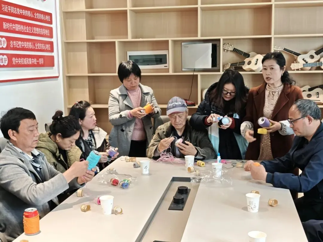 活动现场通过社区故事会挖掘社区记忆,大家围坐在新办公楼里,循着时光脉络细数着岁月变迁,分享与静乐寺相关的独家记忆。李叔分享自己年轻时入矿的旧照,在岁月沉淀中感悟初心与担当;何姨将社区老旧改造的发展变迁娓娓道来,还有人带来振奋人心的励志故事,传递向上向善的正能量。老邻居们你一言我一语,七嘴八舌地补充曾经日常的鲜活点滴,朴实话语里满是岁月温度。社工悉心记录每一段珍贵往事,让尘封的行业记忆得以留存。活动尾声,社工带领大家开展废旧物改造创意手工环节,用闲置的易拉罐和麻绳为主要材料,社工手把手地进行示范教学,耐心讲解麻绳缠绕的技巧,从瓶口到瓶身,如何让麻绳排列整齐、缠绕牢固,制作环节时有的居民认真地将麻绳一圈圈紧密缠绕在瓶身,动作虽缓但一丝不苟;有的相互交流技巧,分享装饰灵感,现场氛围温馨又热闹。这场故事会,不仅搭起了邻里交流的桥梁,更让本土历史文化在分享中传承,为社区凝聚起浓浓温情与文化共鸣。