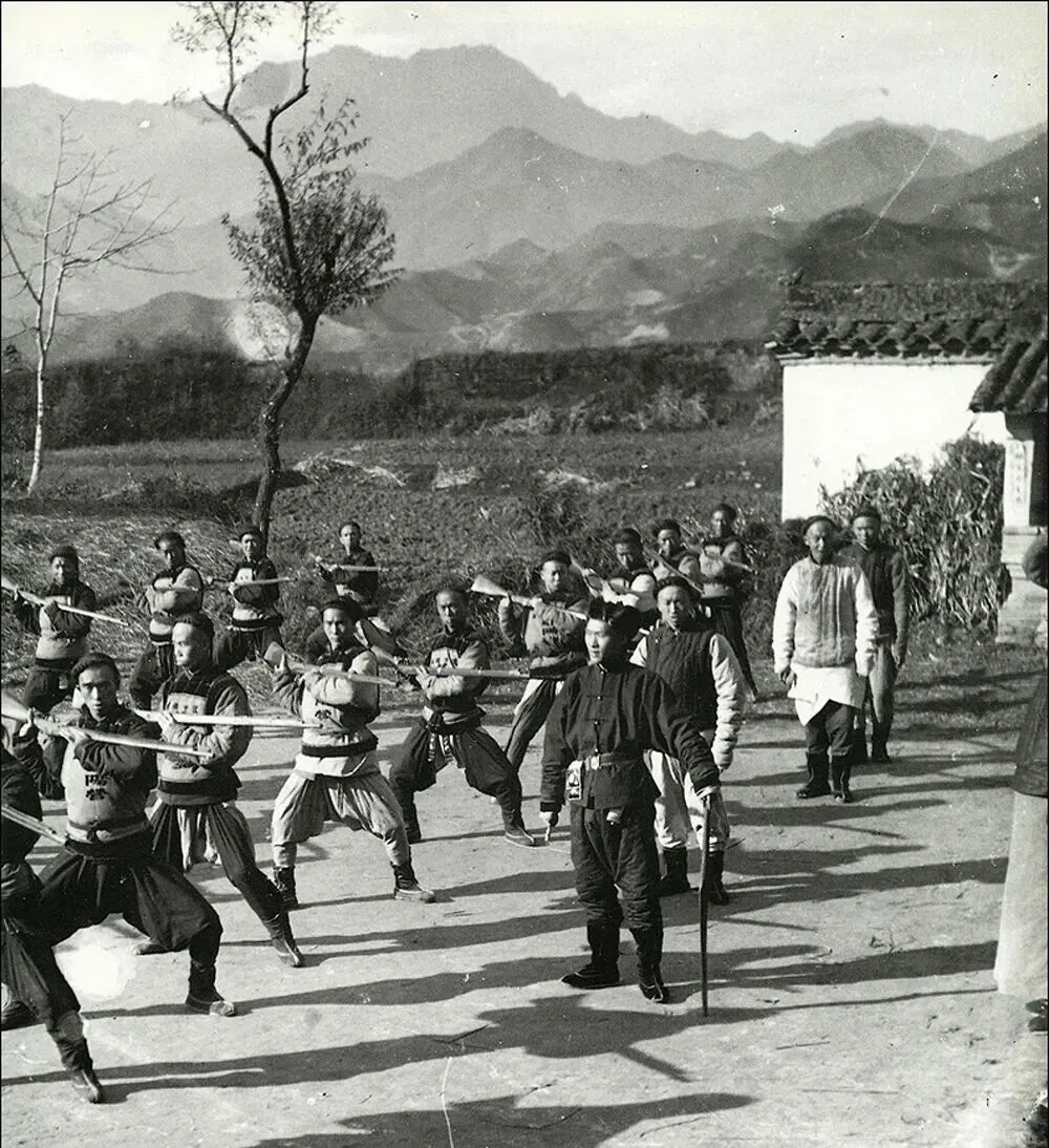 这一张是新军队伍的操练场面,队形排得杠杠齐整,腰间绑沙袋,手持长枪,扎马步下死力,背后就是山,教官盯着,学生跟得紧,那年头练体能、比意志,一样少不了,奶奶回忆,“以前咱们村看见新军练习,都觉得稀罕”,练到最后,很多人硬是从农民变成了兵,气场都不一样。