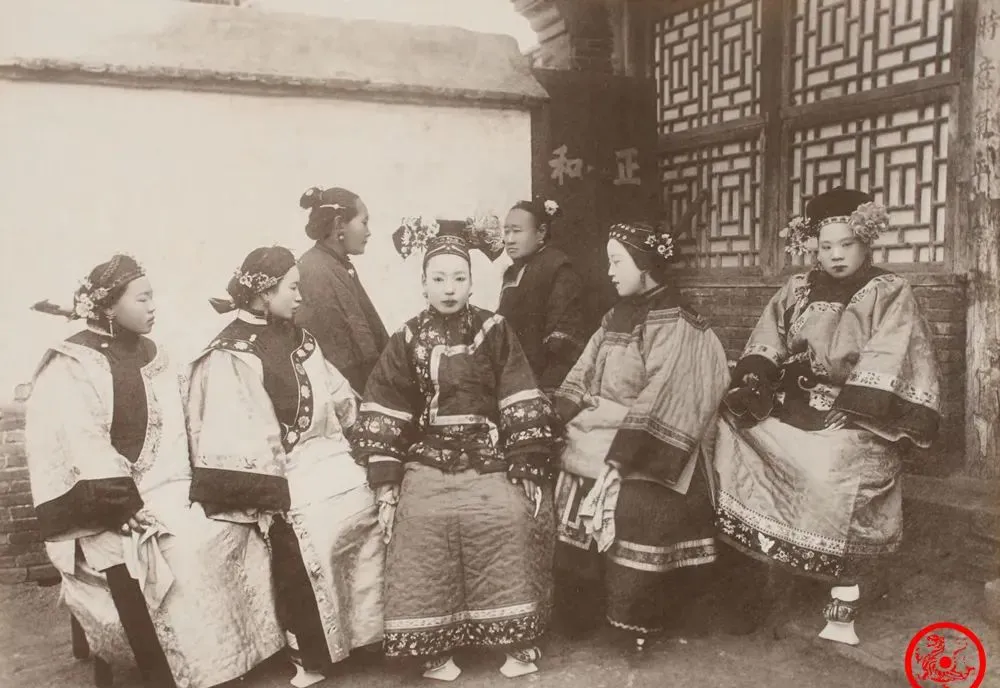 一排女眷坐成一溜,衣裳反光,看得出料子厚实绸缎,头饰大花、簪子、翎毛一水排开,真不比戏里那些八角小帽差,你仔细瞅就能分得出来,右边的袄子宽袖窄腰,鞋尖上翘的走法就是满人的调调,坐那儿的舒坦劲和那小脚裹得密的不在一个频道,以前大伙儿谁家亲戚办事碰到旗人穿衣打扮,总得私底下嘀咕两句,“这家伙讲究,咱可学不来”,同桌上有本事把满汉分出来的,现在都能当老北京导游了。