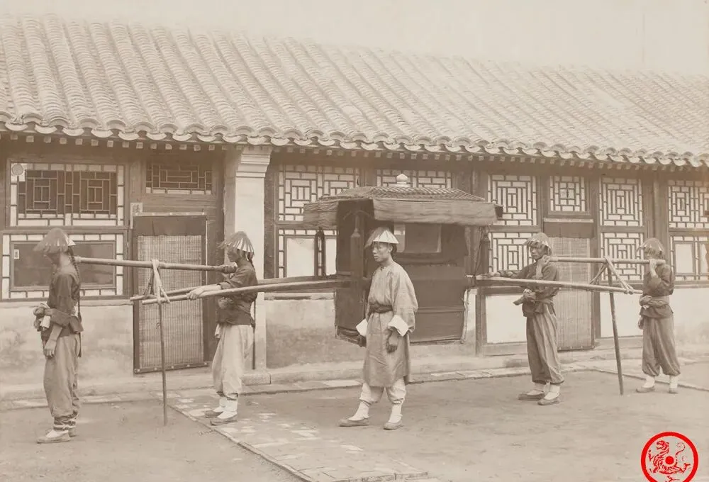 图里四条大汉抬着老式轿子,窄帽子耷拉到脖子后头,裤腿捆的紧紧的,轿杠子斜着朝前冲,站得住靠全身的力气压上去,不用说就能看出来天气冷,大家神情都收着,没有半点笑模样,以前老爷真要出门,宁愿坐马车,雇一班轿夫一年不省事儿,爷爷逗我说,你小子要是赶上那会儿,背得比现在书包沉得多,哪有气派都是累,电视剧都是一顶大官轿里接里送,真要过日子还是看钱。