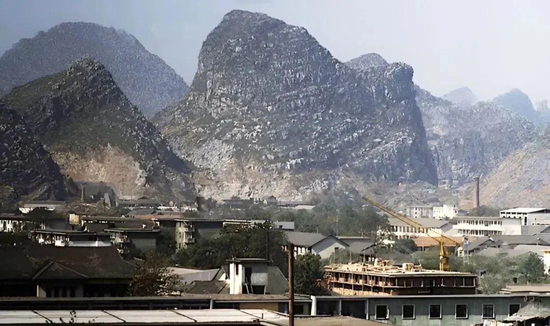 图里桂林的山是本色的,房子一排排起来了,工地上吊车探出脑袋,下面砖瓦堆成一层一层,城区慢慢拉大,烟囱藏在角落里吐一股白气,爷爷说,以前一栋高楼能看半天,新鲜得很,现在成片的住宅把山挡住了,但那些嶙峋的山头还撑着,没挪过地方,日头下看,还是这个味儿。